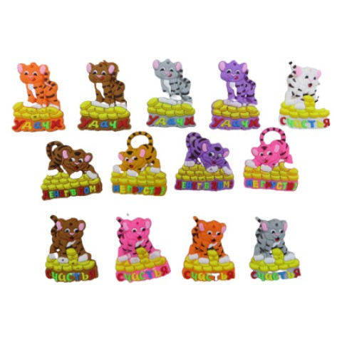 Магніт гумовий Тигр з грошима та побажаннями, 4,5 см, 10 шт в упаковці