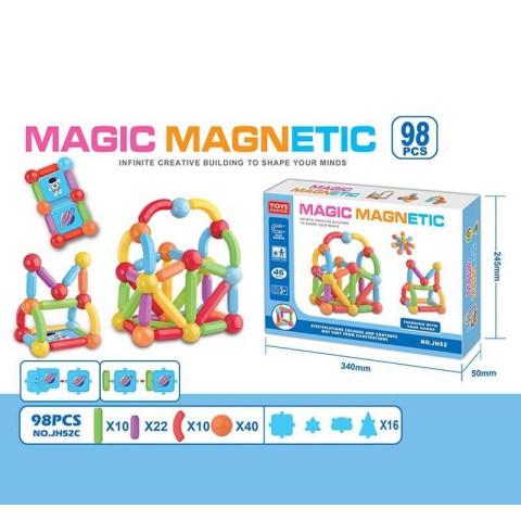 Розкрийте потенціал дитячої уяви та просторового мислення з цим великим магнітним конструктором, що містить цілих **98 деталей** (модель **JH52C**).