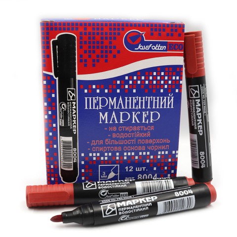 Маркер перманентний J.Otten ECO, червоний, круглий наконечник, 12 шт. в упаковці