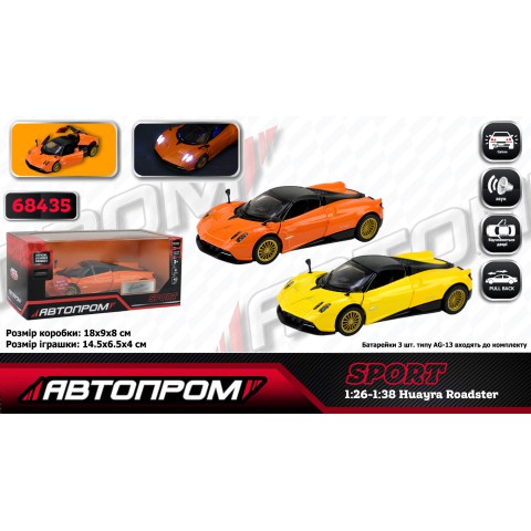 Машина металева АВТОПРОМ Pagani Huayra Roadster 1:32 музика підсвічування відкриваються двері 68435