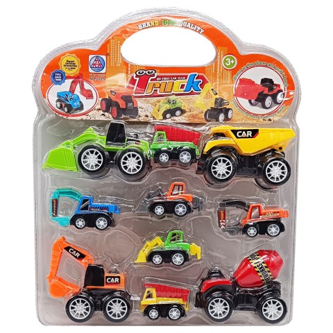 Дитячий набір включає 10 будівельних машинок, ідеально підходить для активних ігор. Розвиває уяву і моторику, допомагає познайомити дітей з технікою. Чудовий подарунок для юних будівельників!