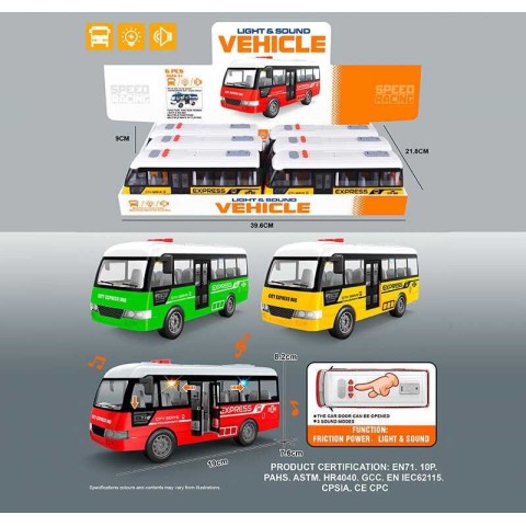 Набір іграшкових автобусів YM9907F, що складається з 6 штук, — це ідеальний подарунок для юного шанувальника міського транспорту та колекціонування. Автобуси можуть бути виконані в різних кольорах або моделях. Вони виготовлені з якісного та міцного матеріалу (наприклад, металу або пластику) та можуть мати інерційний механізм. Гра з набором автобусів розвиває уяву, дрібну моторику та соціальні навички. Придбайте набір автобусів YM9907F (6 шт), щоб організувати власний іграшковий автопарк та розігрувати сцени міського життя.