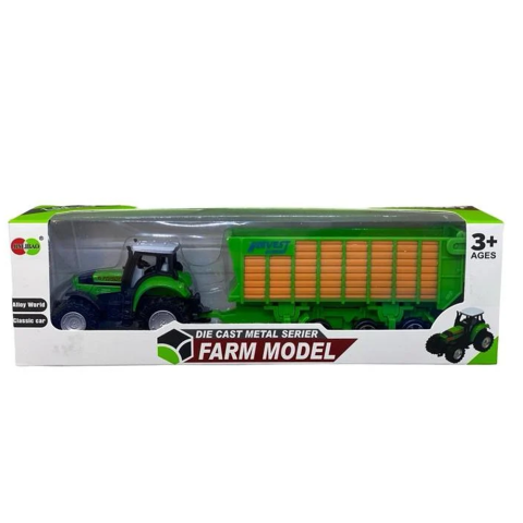 Трактор металевий, 836B-030A, 20 см, масштаб 1:64, з причепом (В асортименті)