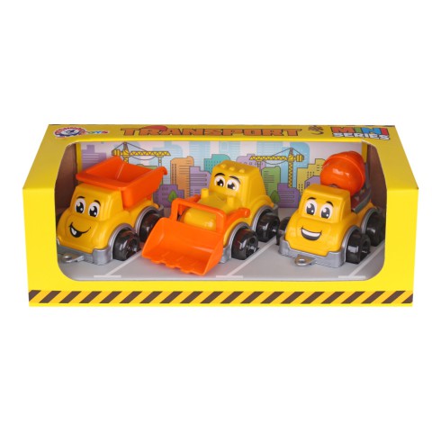Іграшка «Транспорт Міні ТехноК» - це набір затятих будівельників для веселих забав.У наборі маленькі самоскид, трактор та автоміксер. З іграшками цікаво грати у пісочниці та вдома. Можна будувати дороги, мости та будинки, перевозити вантажі, змішувати бетон чи копати траншеї.Такі ігри розвивають у дітей фантазію, уяву та мислення.Особливістю всіх машинок у наборі є очі та посмішка, нанесені методом «тамподруку». З такими емоціями іграшки перетворюються на казкових героїв і ніби оживають.Іграшковий набір будівельної спецтехніки має всі шанси стати найкращим другом вашої дитини. Запаковані машинки в яскраву подарункову коробку.