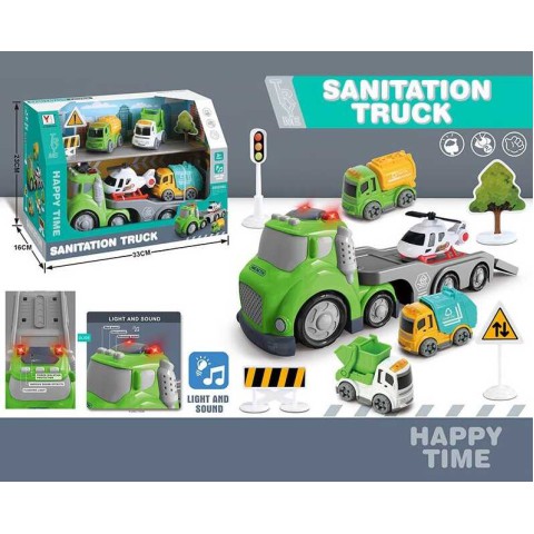 Трейлер 3 машинки інерція гелікоптер муляжі музика підсвічування 98-333A
