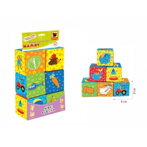Який цікавий світ навколо! Мякі кубики із зображеннями різних предметів і явищ звуть малюка пограти. У наборі шість різнокольорових кубиків. Іграшка - легка і мяка на дотик. Дитина може сміливо гризти, кидати, мяти кубики, що так подобається робити дітям в цьому віці. Маніпуляції зі шкірою або мякою відмінно тренують координацію рухів. Яскраві барвисті малюнки розвивають окомір, сприйняття кольорів. Іграшка виготовлена з якісних, безпечних для самих маленьких діток матеріалів. Перші кубики допоможуть закласти умови для гармонійного розвитку вашої дитини, а попереду ще безліч маленьких і великих відкриттів. Світ малюка складається з безлічі речей. Те, чим оточений дитина, формує його почуття, мислення, сприйняття. Оточіть ваше чадо теплотою і турботою, а також корисними розвиваючими іграшками. Склад: х /б тканину; швейна фурнітура; поролон. У наборі 6 кубиків. Розмір одного кубика 8 × 8 × 8 см. Розмір: 16,5 × 24 × 8 см. Розмір в упаковці: 16,5 × 33 × 8 см.