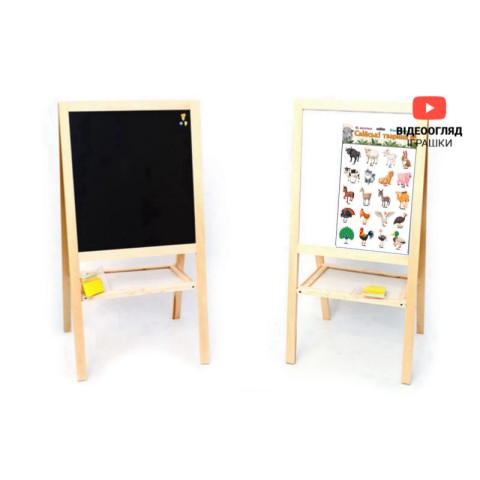 Мольберт шкільний магнітний Свійські тварини 1890 – мольберт з магнітною дошкою та елементами свійських тварин. Дерев'яна конструкція, для малювання та ігор, розвиває знання про тварин від 4 років.