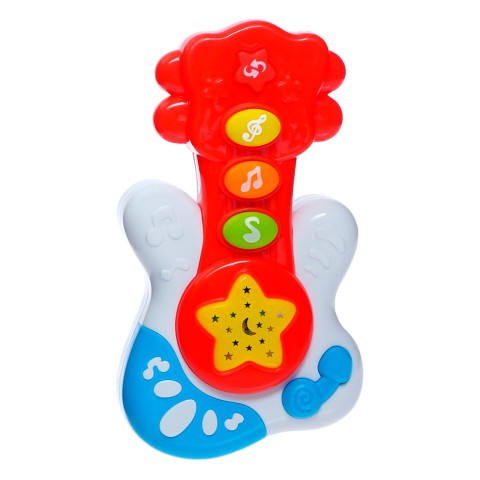 Який же ж маленький музикант без власної гітари?Музична іграшка-проектор Гітара - дитяча гітара, що навчає, виконана в зручній для захоплення дитячою ручкою формі.Завдяки тому, що кнопки мають різну геометричну форму та колір, а також містять геометричний значок, дитина зможе розвинути та закріпити знання.Іграшка відтворює колискові пісні, пісеньки та різні звуки.Крім того, іграшка оснащена проектором зоряного неба.У процесі гри дитина зможе розвинути дрібну моторику рук та пальчиків, слухове та зорове сприйняття, вивчить нові пісеньки, потренує свою пам'ять, освоїть простий рахунок та закріпить знання кольорів.Іграшка виготовлена ​​з якісного та безпечного пластику, пофарбованого у яскраві кольори.Озвучено російською мовоюРозмір іграшки: 5 см × 5 см × 14 см