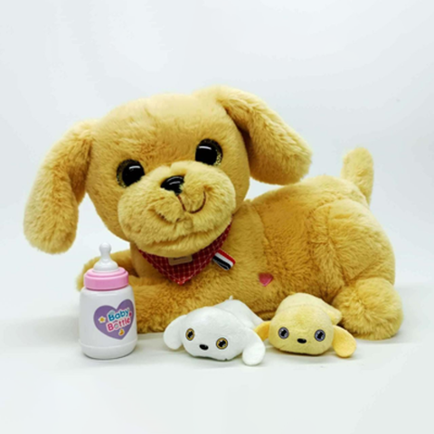 Іграшка інтерактивна мама-собака з цуценятами, 933-140E, 25 см, м’яка, вагітна собака (В асортименті)