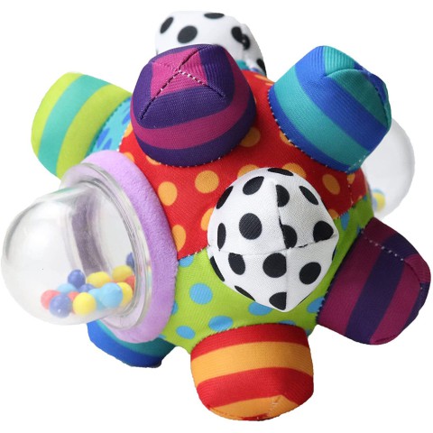 Брязкальце Sozzy М'який м'яч-брязкальце стимулює тактильні навички дитини, роботу зорових та слухових рецепторів. Розвиває дрібну моторику, а яскраві насичені кольори привертають увагу. Ергономічна форма, яскраве забарвлення, різнофактурні матеріали, звукові елементи сприяють руховій та емоційній активності дитини, формують хапальний рефлекс.