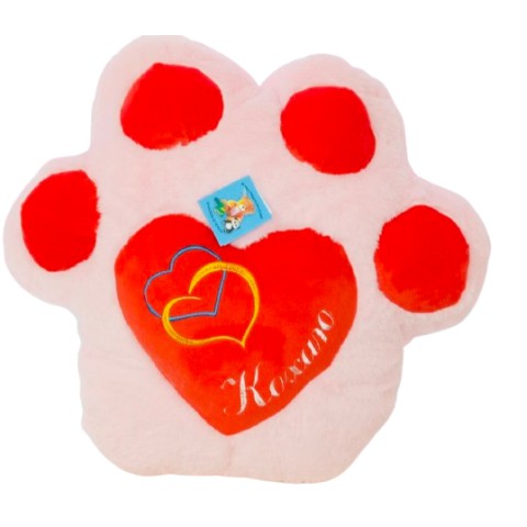 М’яка іграшка Подушка Лапка з серцем, середня, рожево-червона, 45x47 см