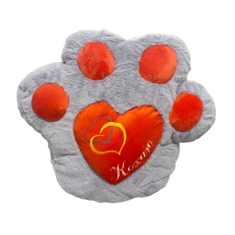 М’яка іграшка Подушка Лапка з серцем, середня, сіро-червона, 45x47 см