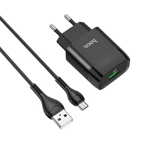 МЗП Hoco C72Q Glorious QC3.0 18W (1USB-A) + кабель USB to MicroUSB Чорний