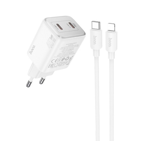МЗП Hoco N42 Elogiado PD45W (2USB-C) + кабель Type-C to Lightning White