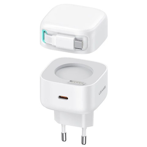 МЗП Usams US-CC202 GaN With Type-C Magnetic Retractable Cable Module XMF Ser. 35W (2USB-C) White