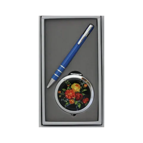 Набір подарунковий кулькова ручка Блакитна + дзеркало Квіти