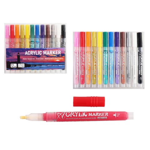 Набір акрилових маркерів, 12 кольорів, 12 шт.