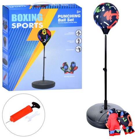 Боксерський набір, груша на стійці, рукавички, насос MR1254-2 - класичний набір із грушею на стійці, рукавичками та насосом. Виготовлений із міцних матеріалів, ідеально для дітей від 6 років. Доступний на demsky.com.ua.