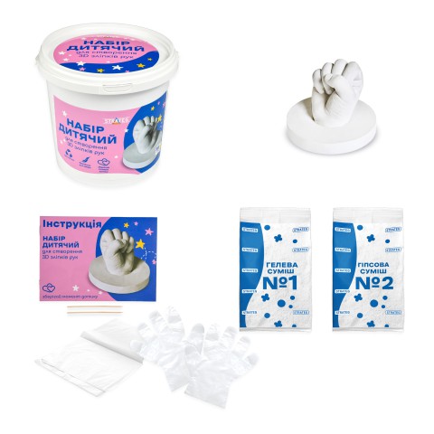 Набір для створення 3D зліпків рук Strateg, 30909 дозволяє створювати тривимірні відбитки рук завдяки спеціальному гіпсовому матеріалу. Включає формувальну суміш, ємність та інструкцію. Ідеально для творчості та унікальних подарунків. Створюйте незабутні спогади! Купуйте на Demsky.com.ua.