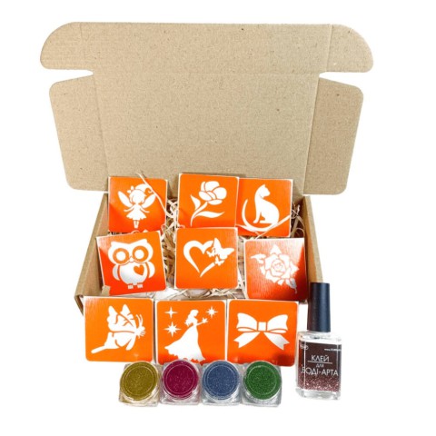 У наборі достатньо гліттеру та багато трафаретів, щоб надовго вистачило для творчих експериментів. Усе акуратно упаковано та вже чекає на гарний настрій і фантазію!