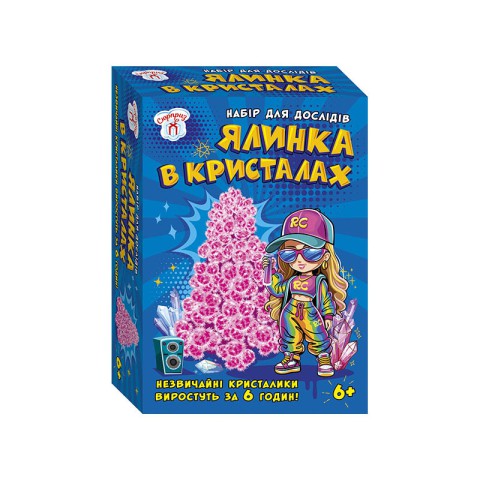 Відчуй магію власноруч! Набір перетворює просту картонну ялинку на казкову прикрасу вже за 6 годин її гілочки вкриваються ніжно-рожевими кристалами. Все дуже просто: зберіть ялинку, розправте гілочки, встановіть у підставку та залийте спеціальний розчин. Спостерігати, як дерево оживає на очах, захопливе заняття для дітей від 6 років, що пробуджує допитливість, любов до науки та дарує яскраві емоції.