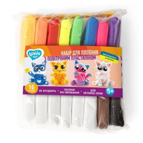 Набір для ліплення з повітряним пластиліном, 16 стіків, TM Lovin