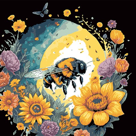Набір для розпису по номерах Бджола і квіткова краса, Strateg, на чорному фоні, 40x40 см, AV4040-33