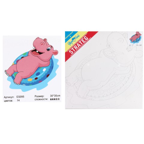 Набір для розпису по номерах Бегемотик на кругу, Strateg, 30x30 см, ES095
