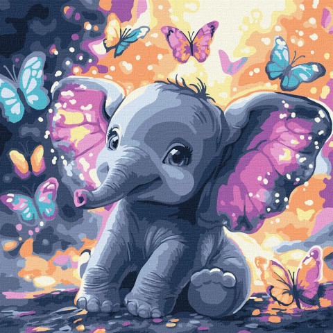 Набір для розпису по номерах Безтурботний слоник з фарбами металік, Ideyka, 30x30 см, КНО6761
