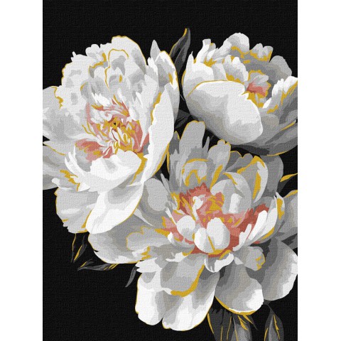 Картина за номерами Білосніжні бутони з фарбами металік Ideyka 30×40 см КНО3297