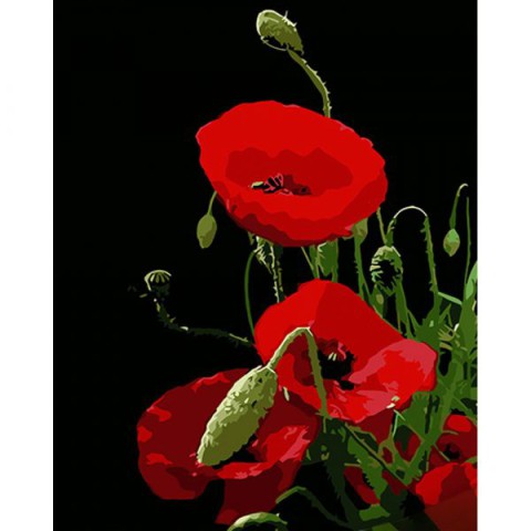 Набір для розпису по номерах Червоний мак, Strateg, на чорному фоні, 40x50 см, AH1024