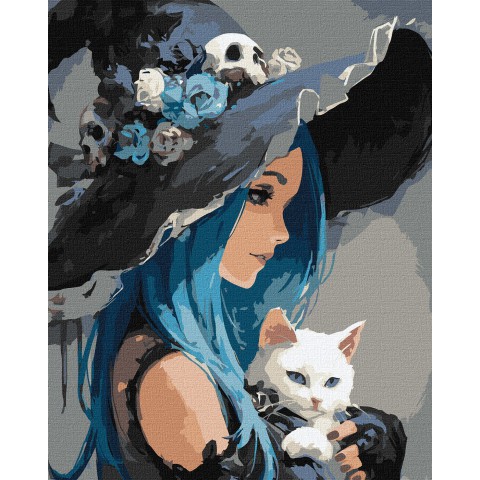 Картина за номерами Дівчина з білим котом Ideyka 40×50 см КНО8688 – дівчина з котом для творчості. Ніжна, для романтики.