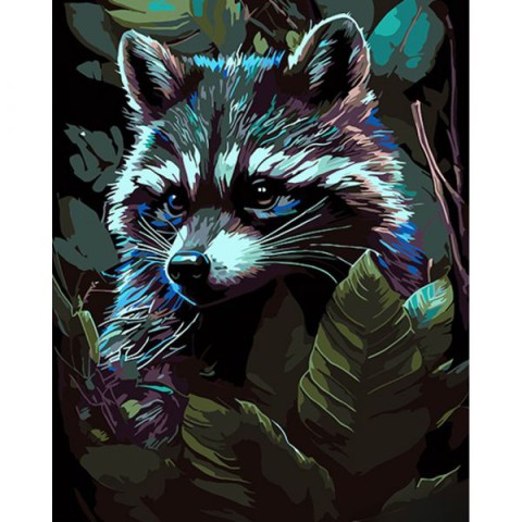 Набір для розпису по номерах Єнот серед лісу, Strateg, на чорному фоні, 40x50 см, AH1026