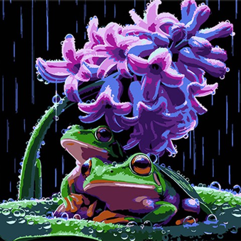 Набір для розпису по номерах Жабенята та весняний дощ, Strateg, на чорному фоні, 30x30 см, SH3030-3