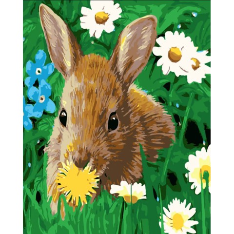 Набір для розпису по номерах Кролик на галявині, Strateg, з лаком, 30x40 см, SS-6419