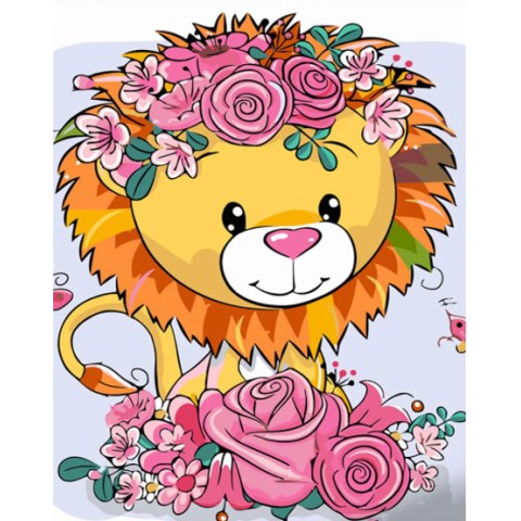 Набір для розпису по номерах Лев у квіточках, Strateg, 30x40 см, SS6717