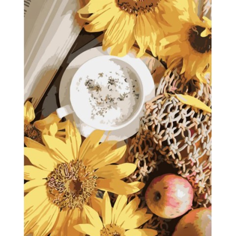 Набір для розпису по номерах Напій біля соняшників, Strateg, 40x50 см, GS1360