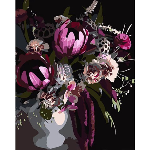 Набір для розпису по номерах Ніжний букет, Strateg, на чорному фоні, 40x50 см, AH1007
