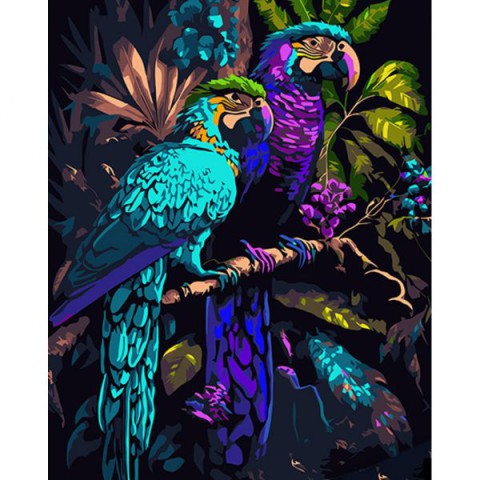 Набір для розпису по номерах Папуги на гілці, Strateg, на чорному фоні, 40x50 см, AH1012