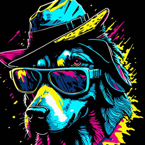 Набір для розпису по номерах Пес у стильній шляпі, Strateg, на чорному фоні, 40x40 см, AV4040-70