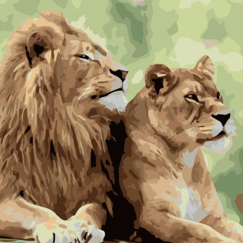 Набір для розпису по номерах Подружжя левів, Strateg, 40x40 см, SK003