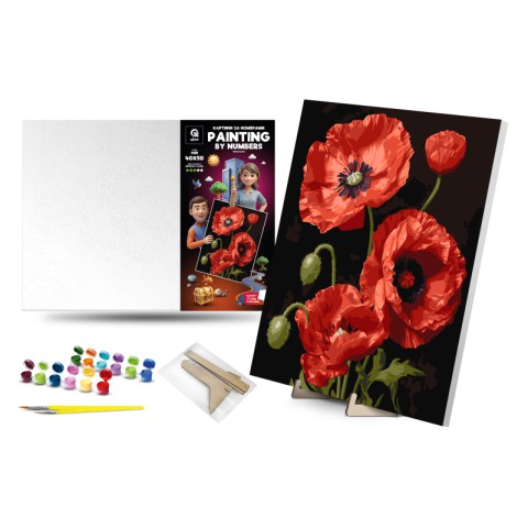 Картина за номерами Qbee Чарівні маки з дерев’яною підставкою 40×50 см QB900-028