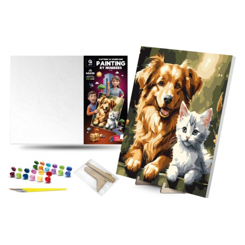 Розвиває креативність, декор. Чудовий подарунок для тваринолюбів. Купуйте картину за номерами Qbee Кіт-Пес з дерев'яною підставкою та створіть милу картину.