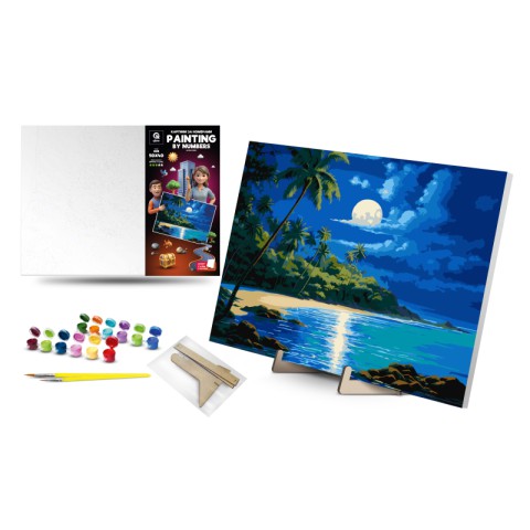 Картина за номерами Qbee Місячне сяйво з дерев’яною підставкою 40×50 см QB900-035 – магічний нічний пейзаж з місячним світлом. Дерев'яна підставка робить роботу самостійним декором.