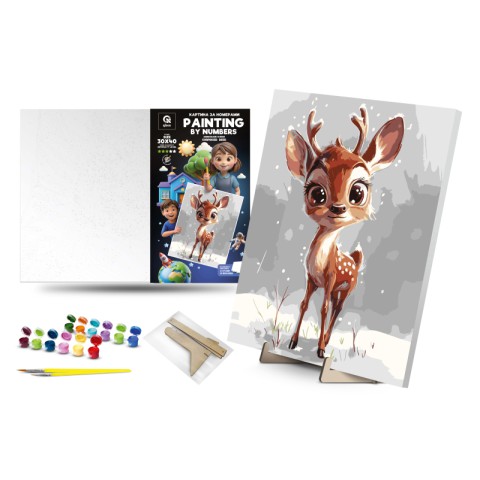Картина за номерами Здивоване оленя з дерев’яною підставкою 30×40 см QB900-082 – це чарівний набір для творчості, який дозволить створити милу та емоційну картину з зображенням здивованого оленяти. Набір включає все необхідне: полотно з нанесеним контуром, якісні акрилові фарби, пензлі та зручну дерев’яну підставку, завдяки якій готова робота виглядатиме як справжній настільний декор.