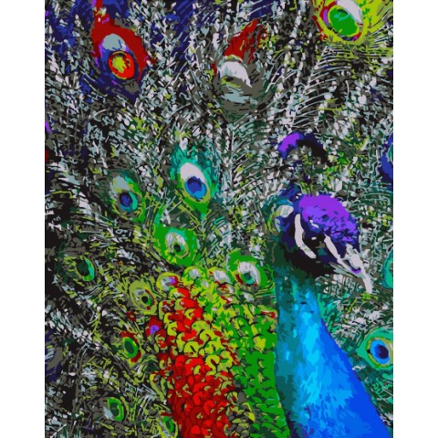 Набір для розпису по номерах Різнобарвне пір’я павлина, Strateg, 40x50 см, GS171
