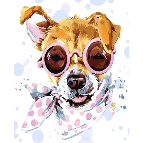 Набір для розпису по номерах Собака в окулярах, Strateg, з лаком, 30x40 см, SS-6423