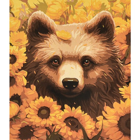 Набір для розпису по номерах Ведмідь серед соняшників, Strateg, 40x50 см, VA-4666