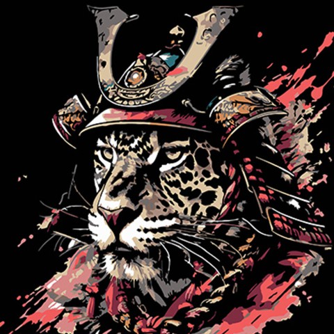 Набір для розпису по номерах Векторна ілюстрація тигра-самурая, на чорному фоні, 40x40 см