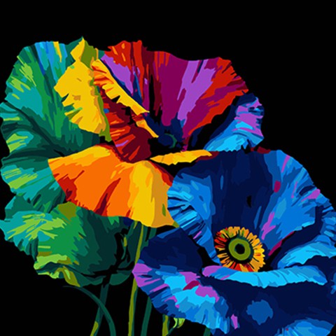 Набір для розпису по номерах Веселка маків, на чорному фоні, 40x40 см, AV4040-77